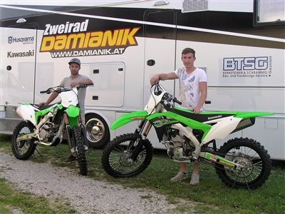 Die Brüder Kevin und Stefan setzen die Saison auf Kawasaki KX 250 F/2017 fort. Es freut uns, dass wir ihnen die beiden Bikes übergeben durften!